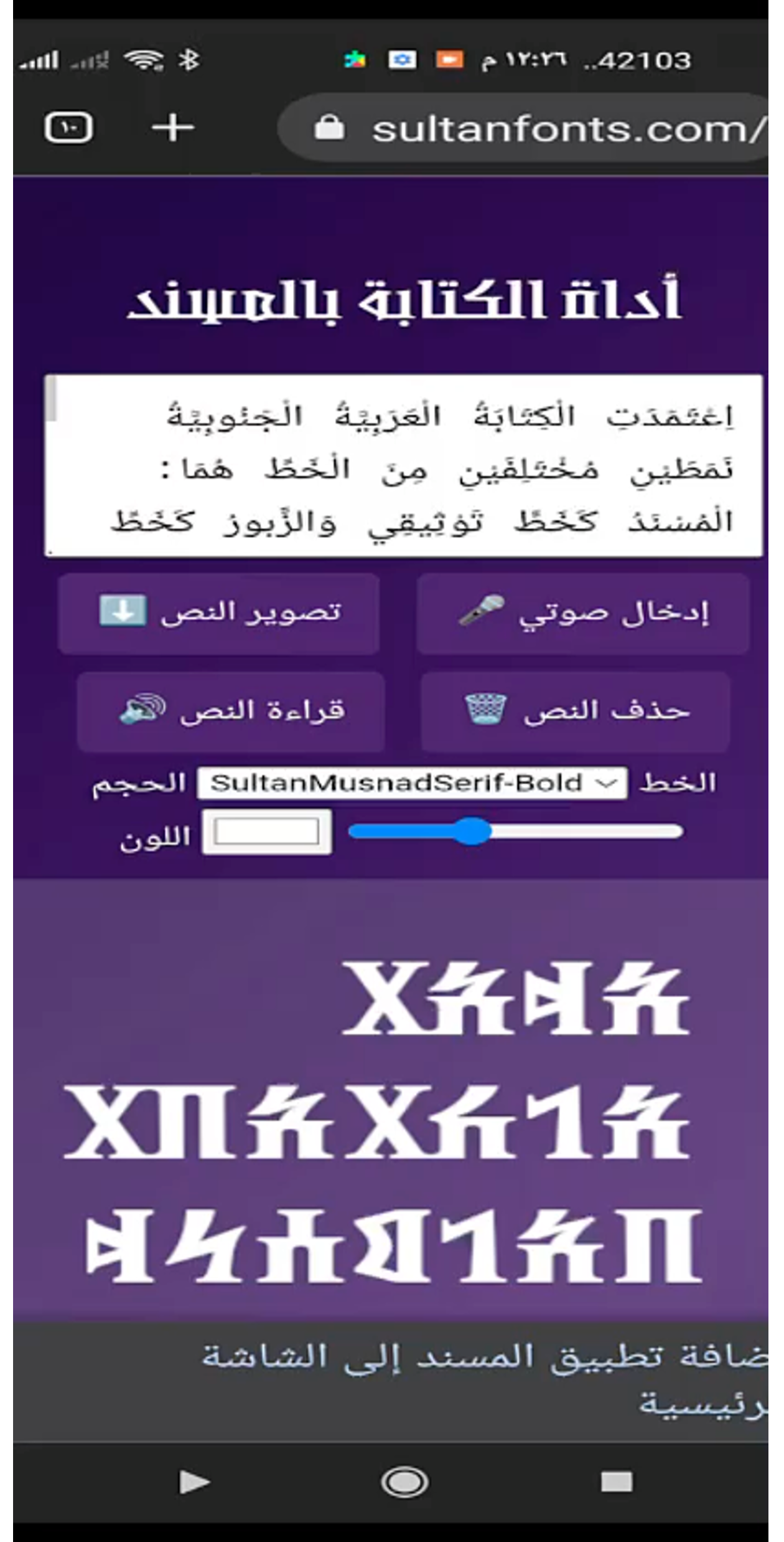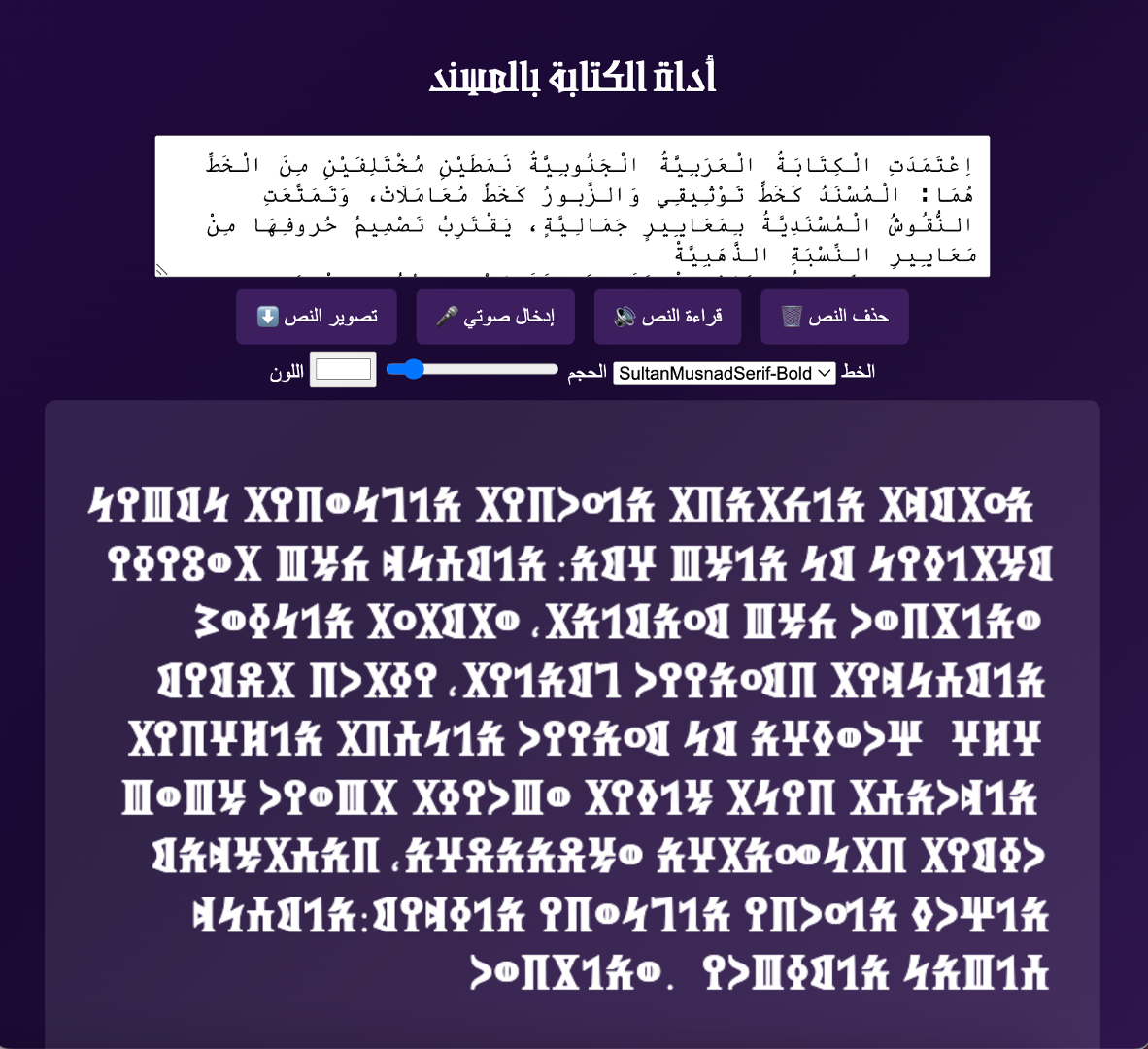 يمكنك الوصول إلى الأداة التفاعلية لخط المسند وزبور مباشرة عبر الرابط التالي: من هنا